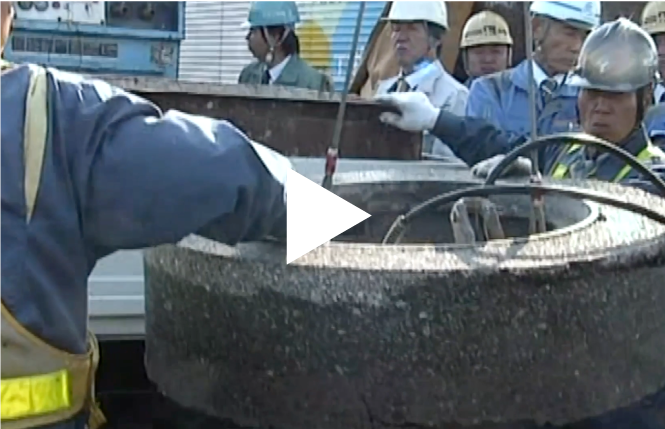 従来工法ではミリ単位の調整ができませんでしが、エポ工法では、 プレキャストのエポリングで調整を行い、エポキシ系レジンコンクリート(ES コンクリート)による微調整で、ミリ単位の高い調整精度を実現。